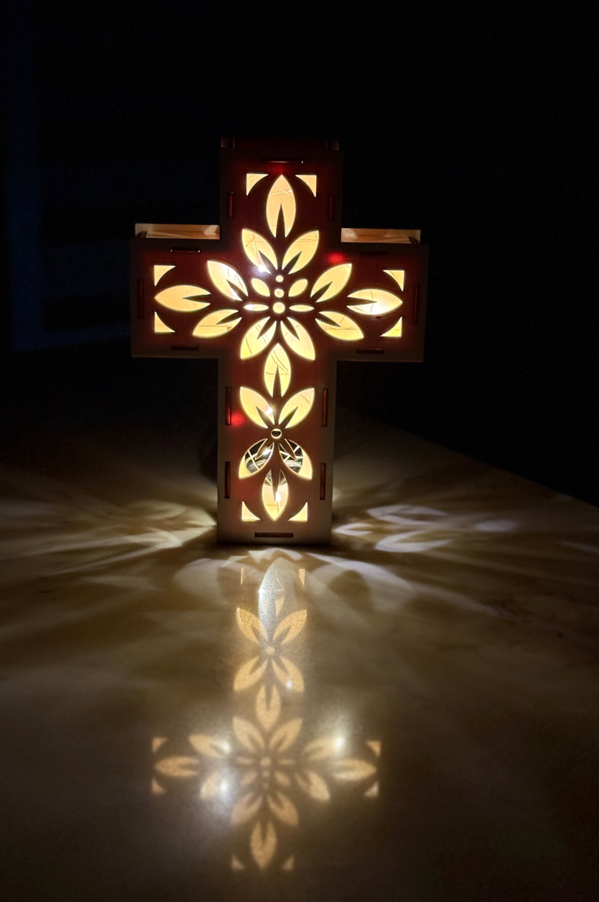 Elevate your space with this elegant Lighted Cross, blending timeless symbolism with subtle illumination. Crafted to provide a warm, ambient glow, it serves as a refined accent piece that inspires tranquility and grace in any room. Perfect for creating a serene atmosphere while showcasing your faith.